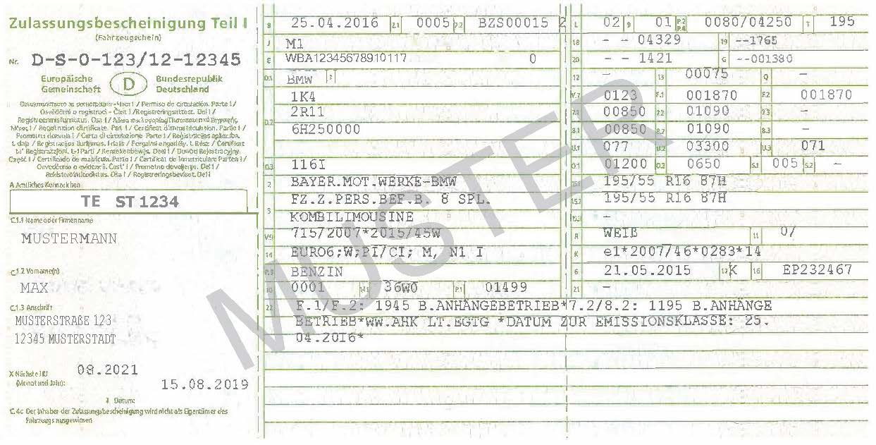- Fahrzeugschein Zulassungsbescheinigung 1(Download)